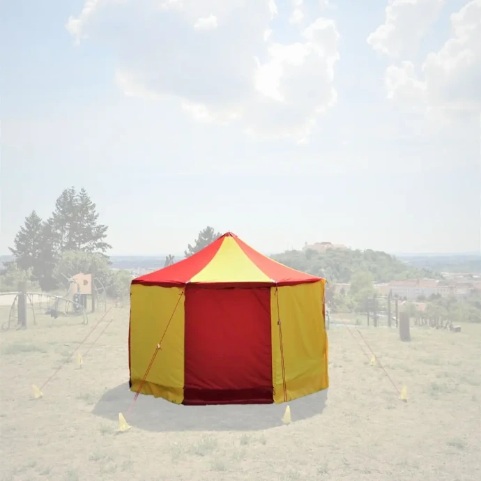 Klasický cirkusový stan s centrálnym stožiarom. Priemer 10 m, kapacita až 80 divákov. Kompletné riešenie pre
